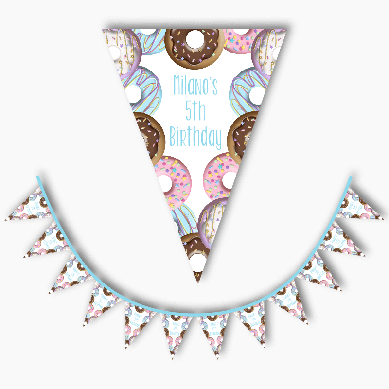 Check Out our Full Range of Personalized Rainbow Donut Party Banners, Decorations & Labels. We also have Discounted Party Packs Available at Amazing Prices!