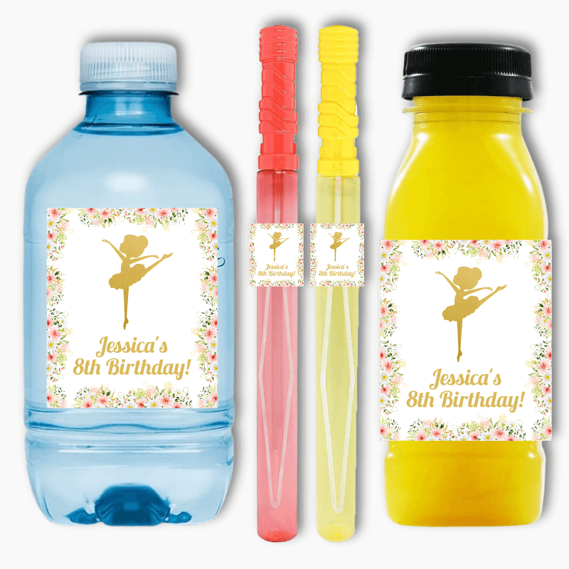 Looking for a fun and versatile way to add a personal touch to your party decorations? Look no further than our Personalised Floral Ballerina Birthday Party Rectangle Stickers! These customised stickers are perfect for decorating drinks, favours, loot boxes, and even bubble wands!
