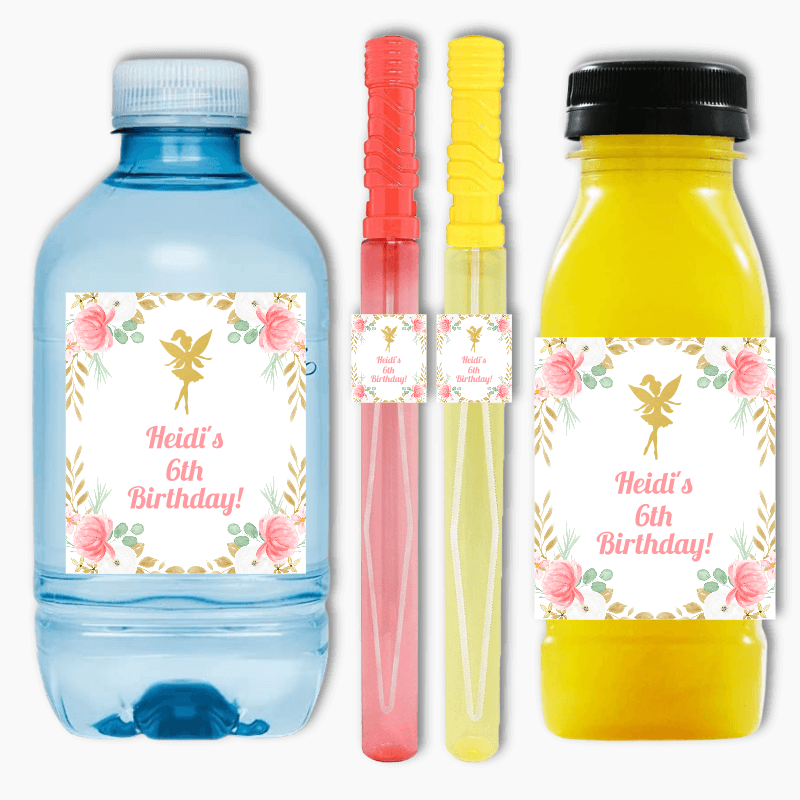 Looking for a fun and versatile way to add a personal touch to your party decorations? Look no further than our Personalised Floral Fairy Birthday Party Rectangle Stickers! These customised stickers are perfect for decorating drinks, favours, loot boxes, and even bubble wands!
