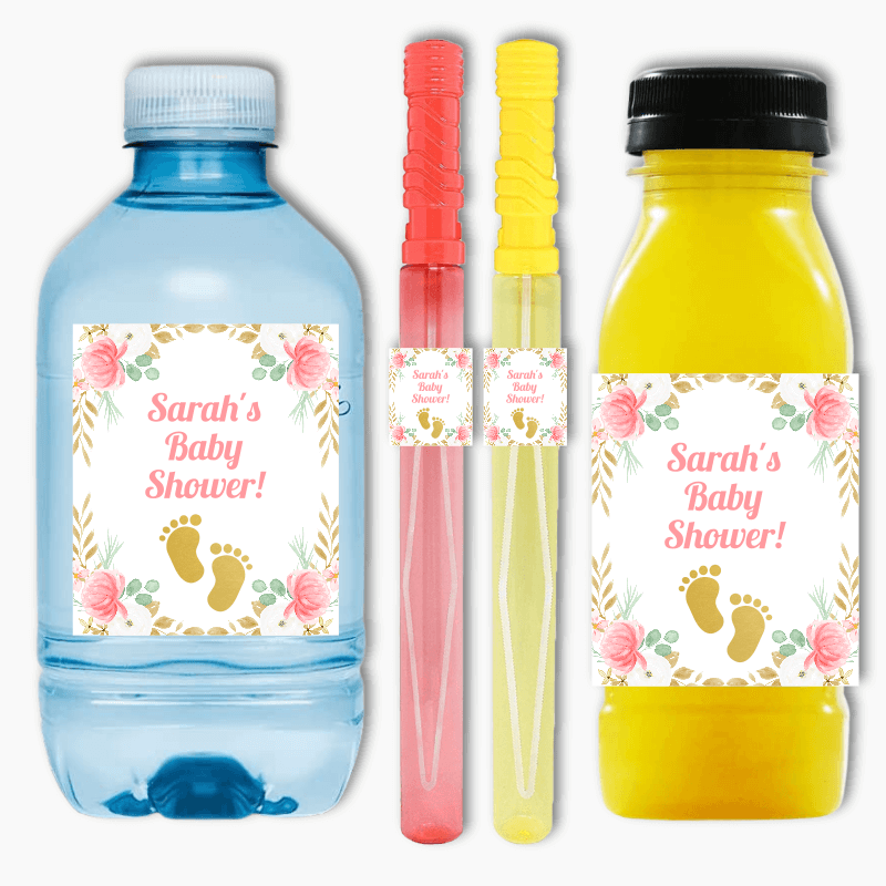 Looking for a fun and versatile way to add a personal touch to your party decorations? Look no further than our Personalised Floral Footprints Baby Shower Rectangle Stickers! These customised stickers are perfect for decorating drinks, favours, loot boxes, and even bubble wands!