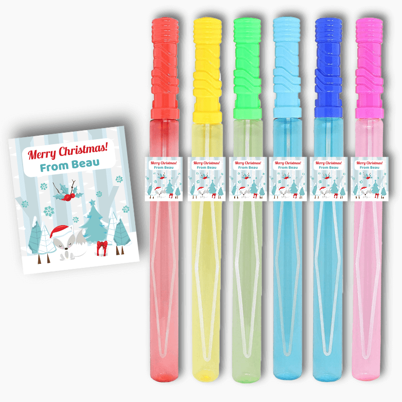 Looking for a fun and versatile way to add a personal touch to your party decorations? Look no further than our Winter Fox Christmas Gift Rectangle Stickers! These customised stickers are perfect for decorating drinks, favours, loot boxes, and even bubble wands!