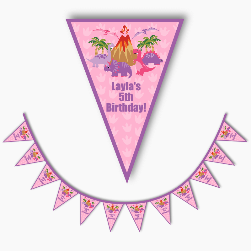 Check Out our Full Range of Personalized Pink Dinosaur Birthday Party Banners, Decorations & Labels. We also have Discounted Party Packs Available at Amazing Prices!
