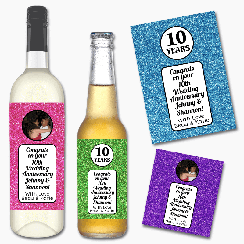 In conclusion, these labels are more than just a gift - they are a tangible token of love and affection that will be remembered long after the bottles are empty. So make your anniversary gift stand out with our personalised Glitter Print labels, and let the happy couple relive their special moments every time they glance at their unique memento.