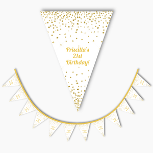 So why settle for boring party decor when you can have our Personalised Gold Confetti Party Flag Bunting? With its high-quality construction, customisation options, and ease of use, it's the perfect addition to any celebration. Make your next occasion special and unforgettable with our Personalised Gold Confetti Party Flag Bunting.