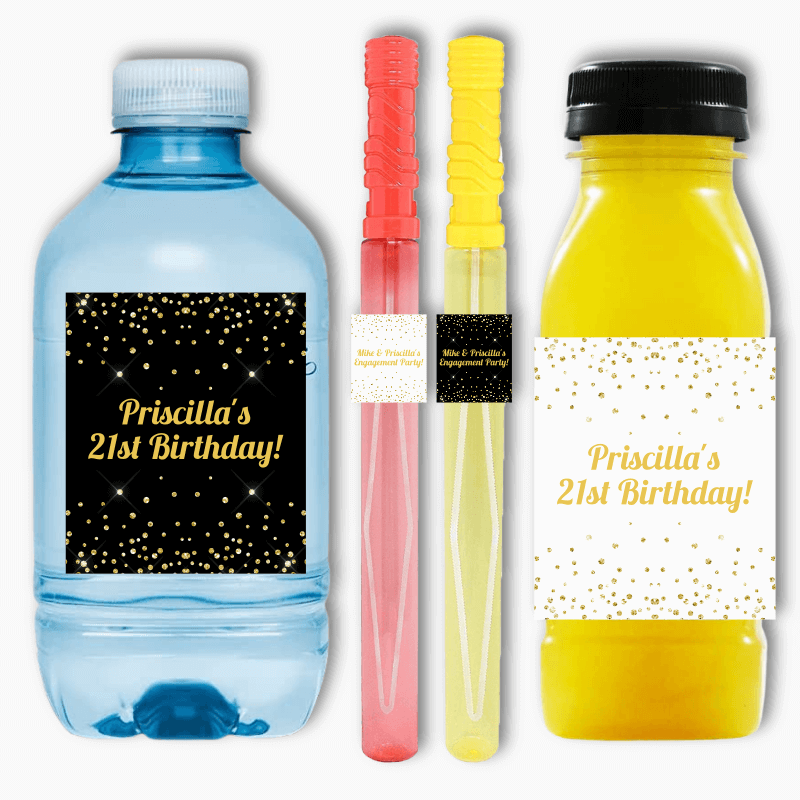 Looking for a fun and versatile way to add a personal touch to your party decorations? Look no further than our Personalised Gold Confetti Party Rectangle Stickers! These customised stickers are perfect for decorating drinks, favours, loot boxes, and even bubble wands!