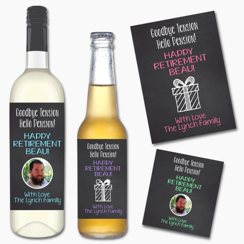 Retirement marks the transition from a life of work to one of relaxation and reflection. What better way to commemorate this significant milestone than with a gift that encapsulates the joy of this new chapter? Our Personalised 'Goodbye Tension, Hello Pension' Retirement Wine & Beer Labels offer a whimsical and heartfelt way to celebrate the retiree's well-deserved break.