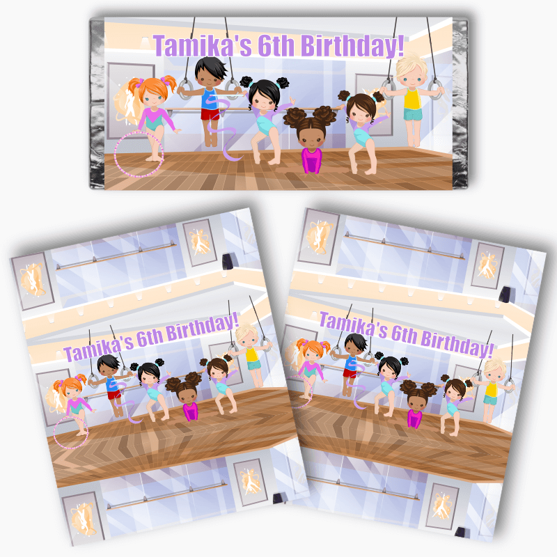 Get ready to sweeten up your next party or special occasion with our Personalised Gymnastics Party Mini Chocolate Labels! These custom-made labels are the perfect way to add a personal touch to your event and create a lasting impression on your guests.