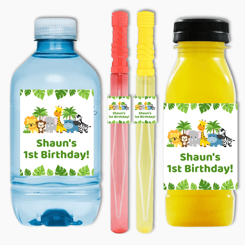 Looking for a fun and versatile way to add a personal touch to your party decorations? Look no further than our Personalised Jungle Animals Party Rectangle Stickers! These customised stickers are perfect for decorating drinks, favours, loot boxes, and even bubble wands!