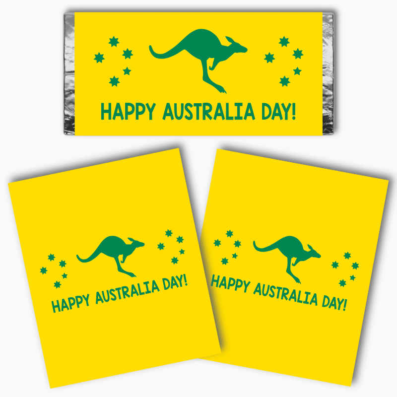 Celebrate Australia Day in style with our Green & Gold Kangaroo Australia Day Mini Chocolate Labels. These fun, colorful labels are the perfect addition to your Australia Day festivities, whether you're hosting a party at home or celebrating with colleagues at work.
