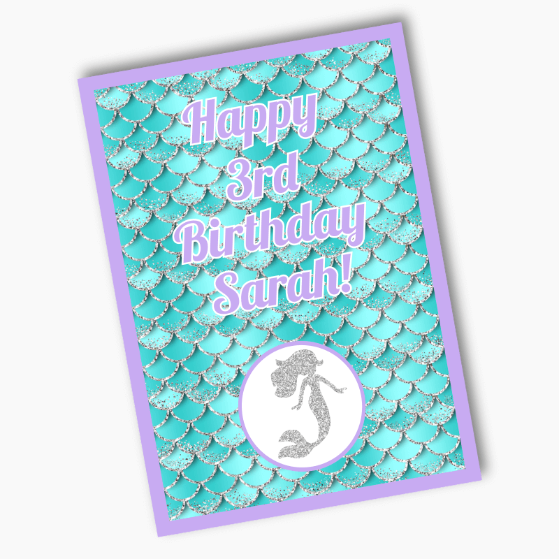 Each party sign is printed with your own custom message, including your name and occasion, making it the perfect addition to any celebration. Our Personalised Mermaid Scales Birthday Party Posters will add a touch of fun and personality to your event.