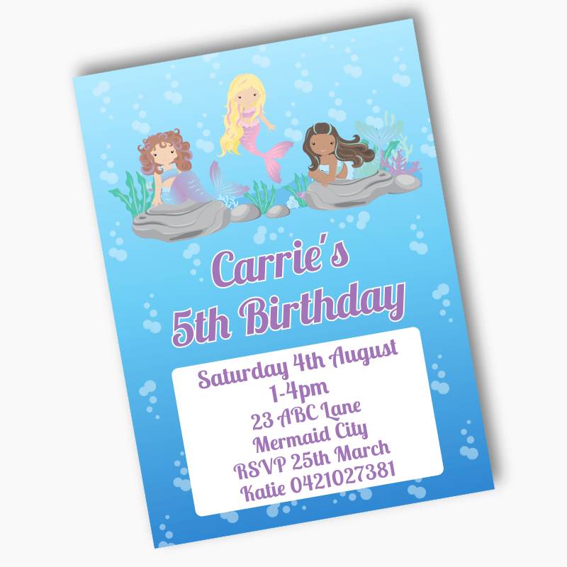 Don't settle for generic party invites that don't do your special occasion justice. With our Personalised Mermaids Birthday Party Invites, you can create a one-of-a-kind invitation that your guests will cherish. So why wait? Start designing your invites today and make your party an unforgettable event!