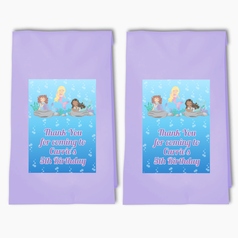 Are you looking for a way to make your party unforgettable? Look no further than our Personalised Mermaids Birthday Party Bags & Labels! Our Loot Bags are the perfect way to thank your guests for coming and to send them home with a little something extra.