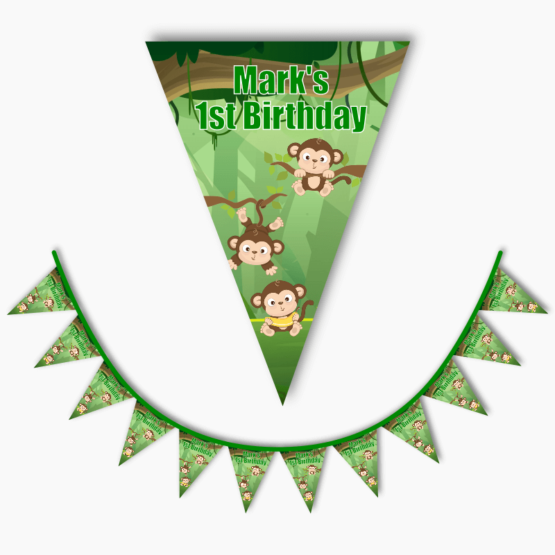Are you tired of generic party decorations that lack personality? Look no further than our Personalised Monkey Birthday Party Flag Bunting! Perfect for any occasion, our bunting is customisable with your choice of text and images. This is not your ordinary bunting decoration - it's a unique and customisable design that will make your special occasion stand out from the rest.