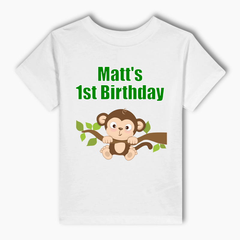 Not only do these t-shirts serve as a perfect party wear, but they also add a stylish and comfortable piece to your child's everyday wardrobe. Make your child's party unforgettable with a custom outfit that's as unique as your celebration, and order your Personalised Monkey Birthday Party Kids T-Shirt today.