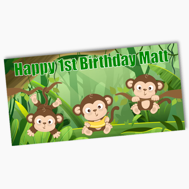 Make your special occasion truly unforgettable with our Personalised Monkey Birthday Party Banners! Our high-quality banners are the perfect centrepiece for any event and are guaranteed to make your guests feel right at home. With three sizes to choose from, you can select the perfect banner for your occasion.