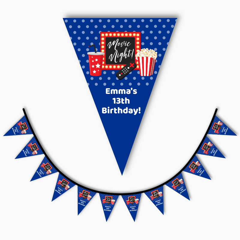 So why settle for boring party decor when you can have our Personalised Movie Night Birthday Party Flag Bunting? With its high-quality construction, customisation options, and ease of use, it's the perfect addition to any celebration. Make your next occasion special and unforgettable with our Personalised Movie Night Birthday Party Flag Bunting.