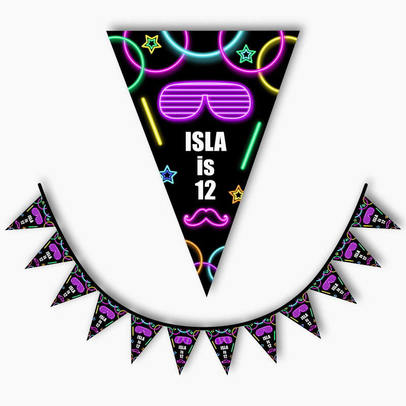Personalised Neon Glow Birthday Party Flag Bunting