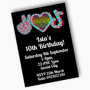 Don't settle for generic party invites that don't do your special occasion justice. With our Personalised Peace, Love & Music Birthday Party Invites, you can create a one-of-a-kind invitation that your guests will cherish. So why wait? Start designing your invites today and make your party an unforgettable event!