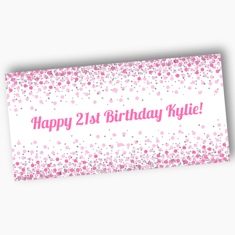 All of our banners are made in Australia, ensuring the highest quality and fastest turnaround times. Make your next event truly unforgettable with our Personalised Pink Confetti Party Banners, and create memories that will last a lifetime. Order your custom Party Banners today and let the festivities begin!