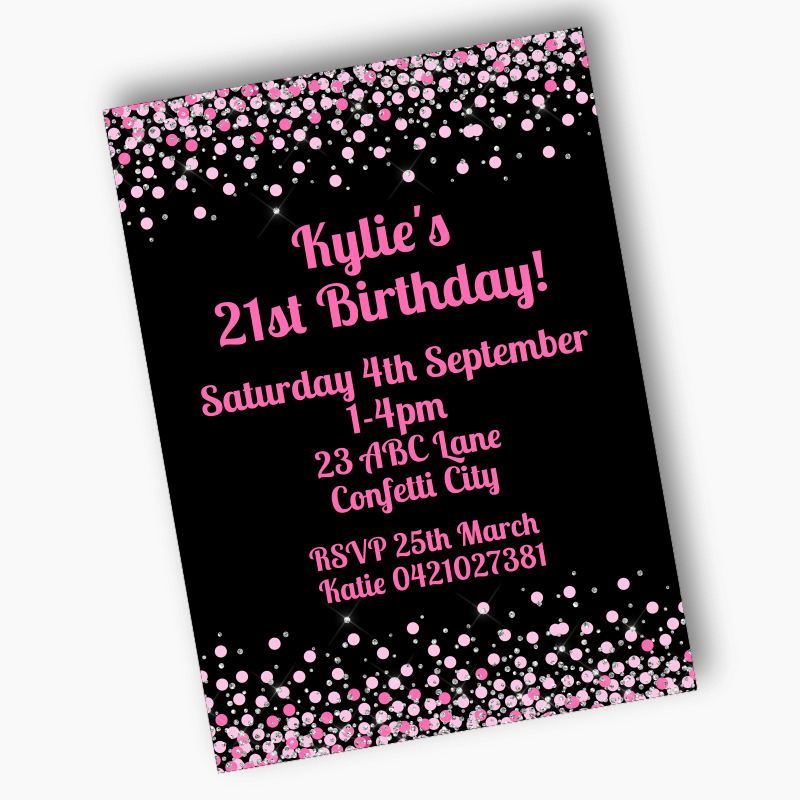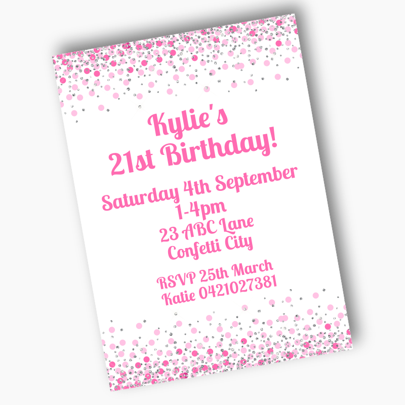 Don't settle for generic party invites that don't do your special occasion justice. With our Personalised Pink Confetti Party Invites, you can create a one-of-a-kind invitation that your guests will cherish. So why wait? Start designing your invites today and make your party an unforgettable event!