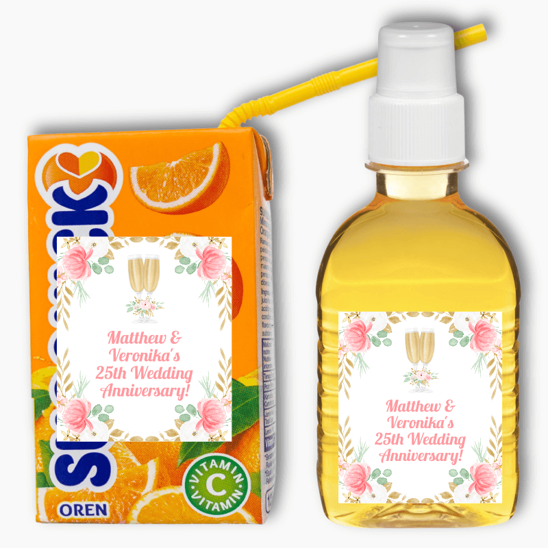 Looking for a fun and versatile way to add a personal touch to your party decorations? Look no further than our Personalised Pink & Gold Floral Wedding Anniversary Rectangle Stickers! These customised stickers are perfect for decorating drinks, favours, loot boxes, and even bubble wands!