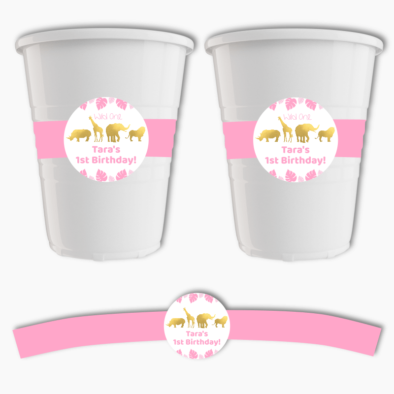 Our Personalised Pink & Gold Safari Jungle Animals Party Cup Stickers are the perfect way to wow your guests and ensure that your party stands out from the rest. Whether you're serving up cocktails, soda, or any other party drinks, these stickers will add an extra touch of fun and excitement to your celebration.