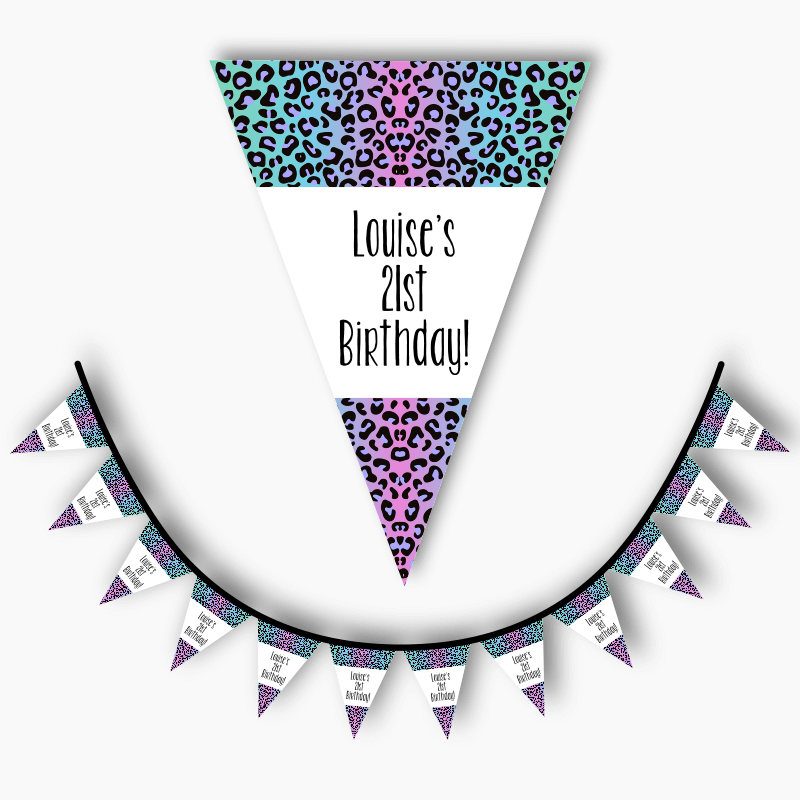 Are you tired of generic party decorations that lack personality? Look no further than our Personalised Rainbow Animal Print Birthday Party Flag Bunting! Perfect for any occasion, our bunting is customisable with your choice of text and images. This is not your ordinary bunting decoration - it's a unique and customisable design that will make your special occasion stand out from the rest.