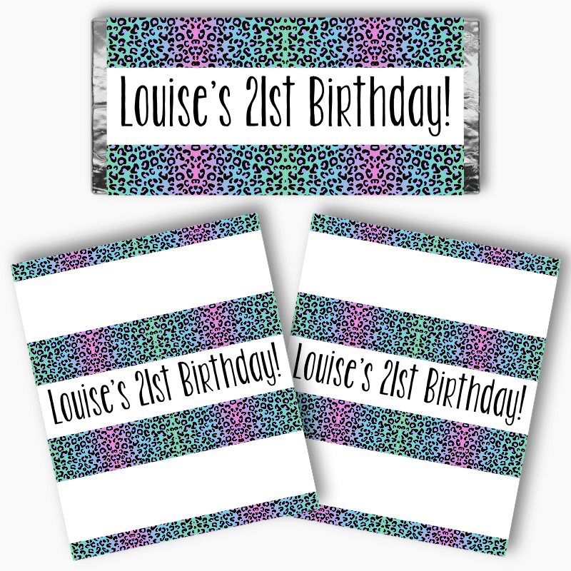 Get ready to sweeten up your next party or special occasion with our Personalised Rainbow Animal Print Birthday Party Mini Chocolate Labels! These custom-made labels are the perfect way to add a personal touch to your event and create a lasting impression on your guests.