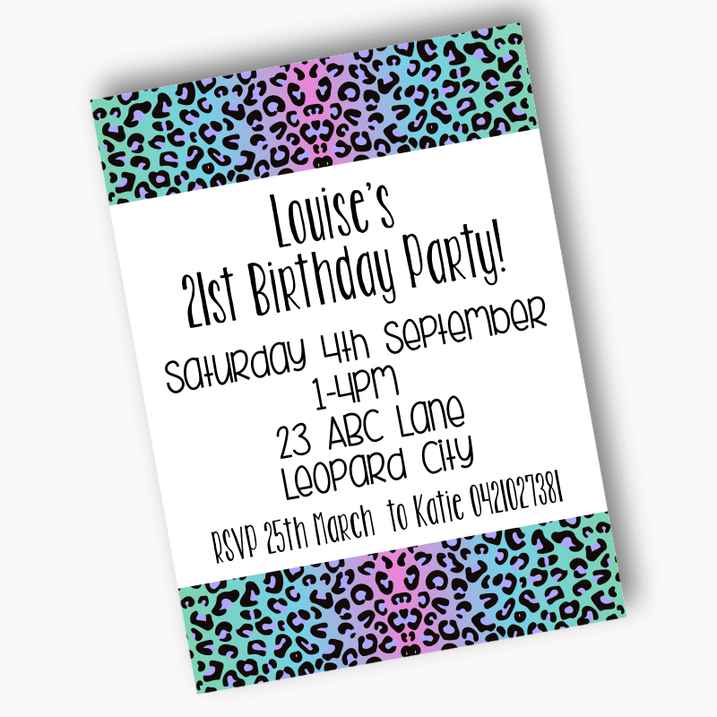 Don't settle for generic party invites that don't do your special occasion justice. With our Personalised Rainbow Animal Print Birthday Party Invites, you can create a one-of-a-kind invitation that your guests will cherish. So why wait? Start designing your invites today and make your party an unforgettable event!