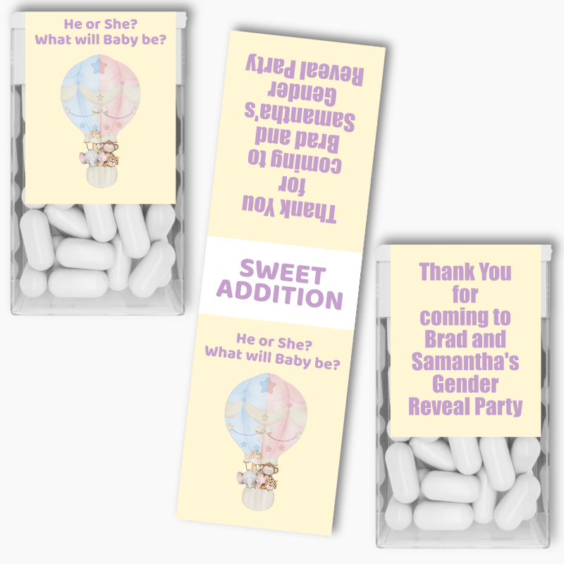 So why settle for boring Tic Tac containers when you can add your personal touch with our Personalised Safari Animals Gender Reveal Party Tic Tac Labels? Make your next celebration unforgettable with our fun and unique party favours. Order now and let the party begin!