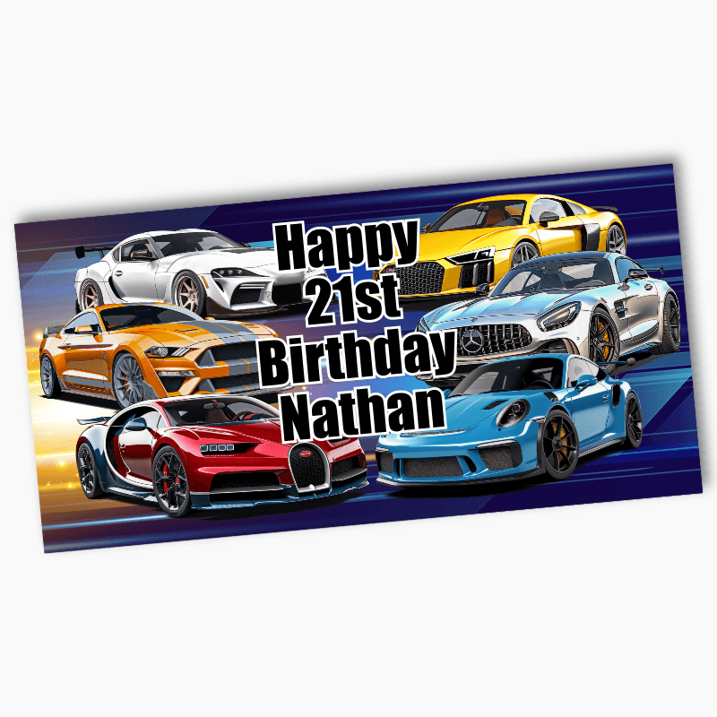 All of our banners are made in Australia, ensuring the highest quality and fastest turnaround times. Make your next event truly unforgettable with our Personalised Sports Cars Party Banners, and create memories that will last a lifetime. Order your custom Party Banners today and let the festivities begin!