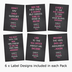 Being a single mum is an act of everyday bravery, a journey filled with challenges, and a testament to the strength of a woman. Celebrate the resilience and spirit of the single mum in your life with our unique and thoughtful Strong Single Mumma Mix Wine & Beer Labels. Designed as a quirky and heartwarming token of appreciation, these labels are perfect gifts for a single mum who deserves recognition for her unwavering love and dedication.