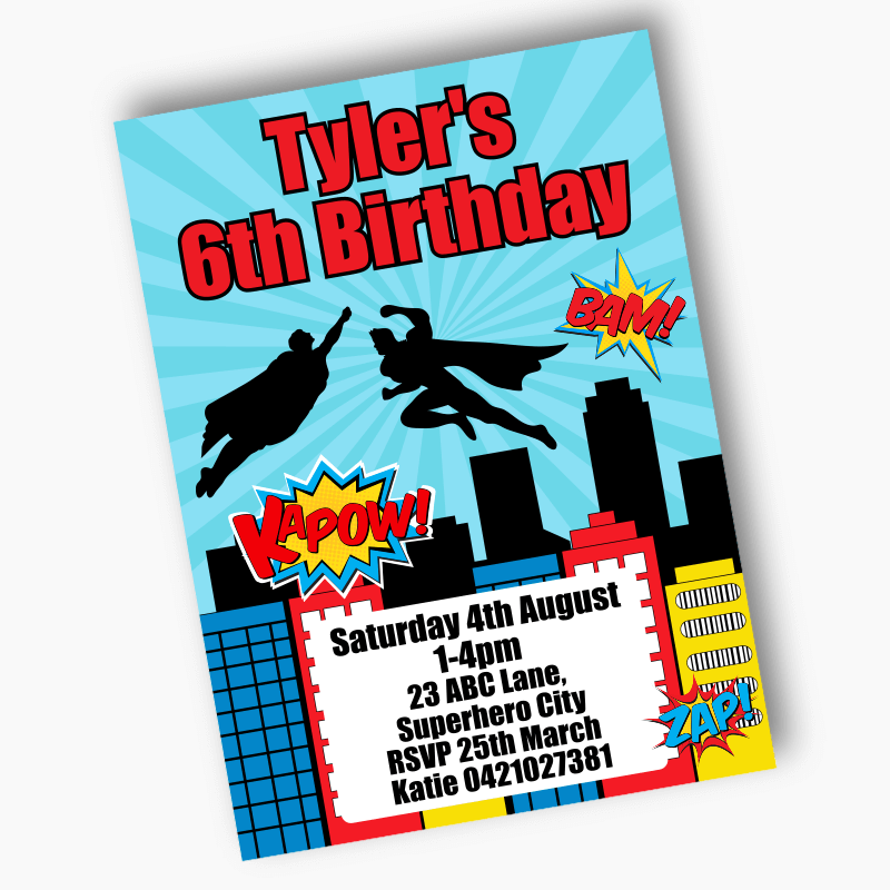 Are you looking for a way to make your party stand out from the rest? Look no further than our Personalised Superheroes Birthday Party Invites! Our amazing invitations are designed to impress your guests from the moment they receive them.