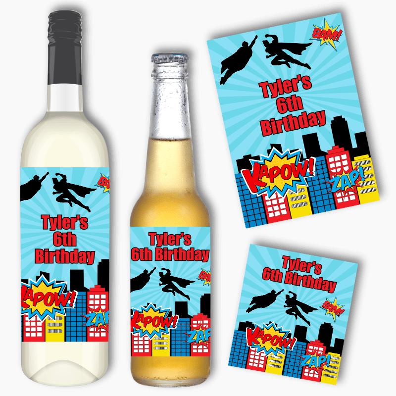 Customise our Personalised Superheroes Wine & Beer Labels with the Celebrant's Name & Special Occasion. No matter the Event or Celebration, our wine and beer labels are the perfect addition. Delight your guests with a personalised touch that showcases your thoughtfulness and creativity.