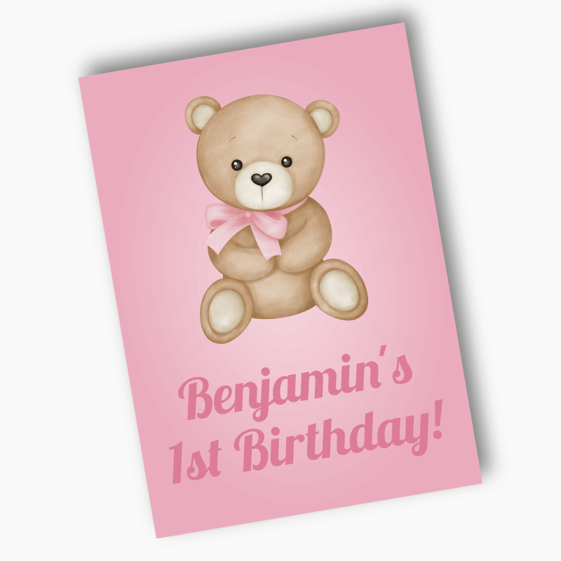 Each party sign is printed with your own custom message, including your name and occasion, making it the perfect addition to any celebration. Our Personalised Teddy Bear Party Posters will add a touch of fun and personality to your event.