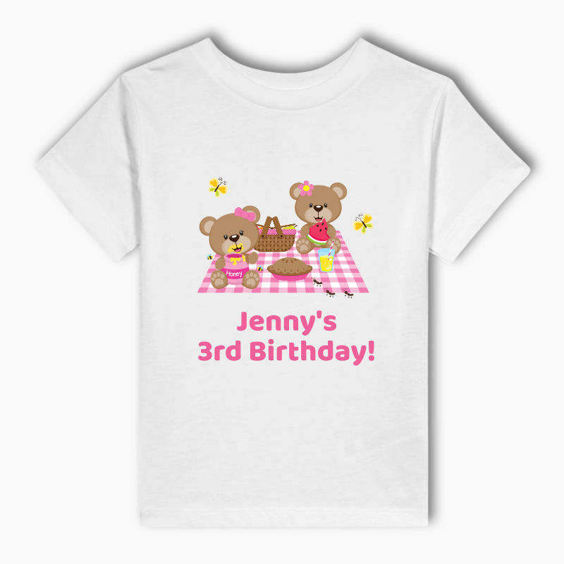 Not only do these t-shirts serve as a perfect party wear, but they also add a stylish and comfortable piece to your child's everyday wardrobe. Make your child's party unforgettable with a custom outfit that's as unique as your celebration, and order your Personalised Teddy Bears Picnic Party Kids T-Shirt today.
