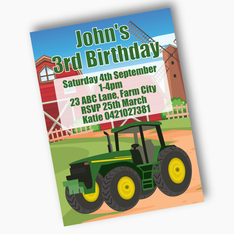 Are you looking for a way to make your party stand out from the rest? Look no further than our Personalised Green Tractor Birthday Party Invites! Our amazing invitations are designed to impress your guests from the moment they receive them.