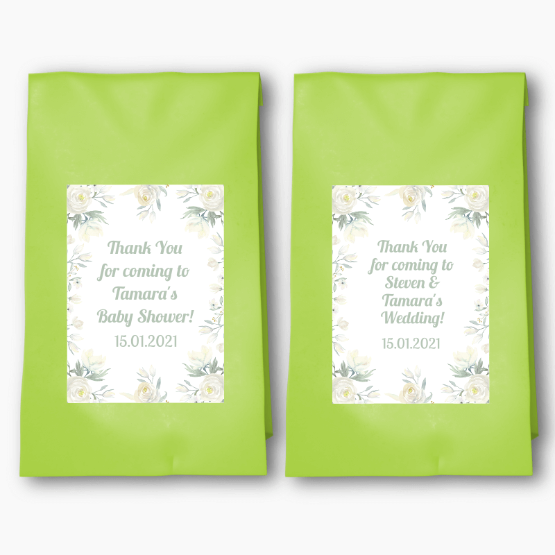 So why wait? Treat your guests to something special with our Personalised White Floral Party Bags & Labels. Just add some fun trinkets and lolly's and your party bags are sure to be a hit. Order now and make your next event one to remember!