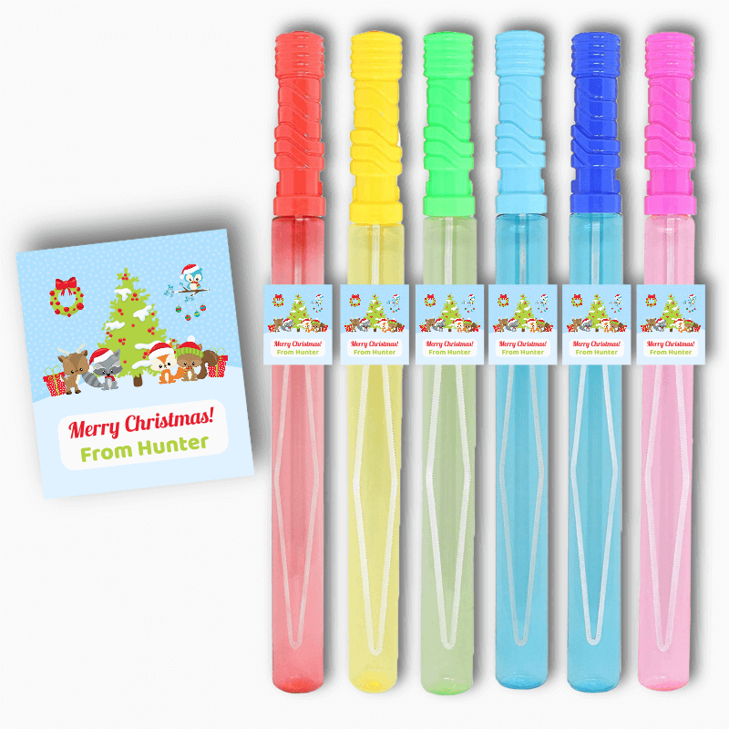 Looking for a fun and versatile way to add a personal touch to your party decorations? Look no further than our Woodland Animals Christmas Gift Rectangle Stickers! These customised stickers are perfect for decorating drinks, favours, loot boxes, and even bubble wands!